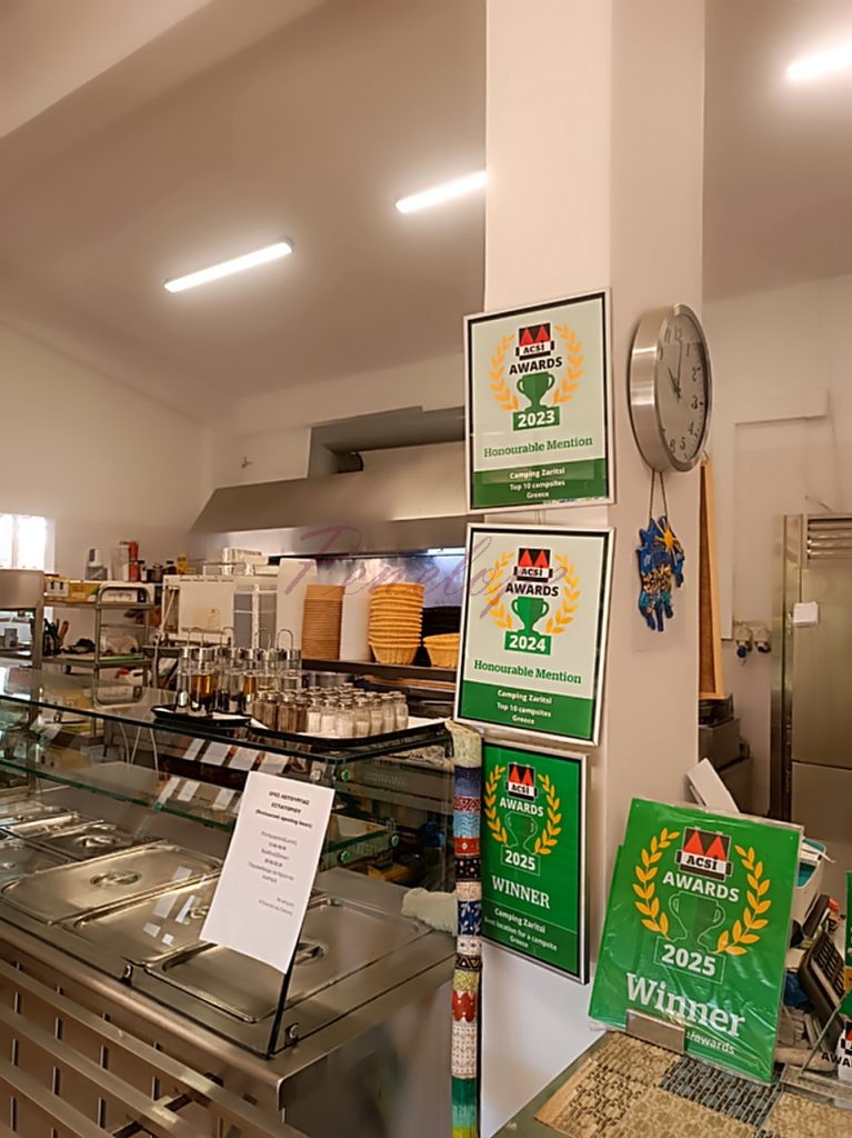 Ο χώρος ήταν άψογα οργανωμένος και πεντακάθαρος. Διαθέτει εστίες για μαγείρεμα αλλά και εστιατόριο. Το Mini Market δεν θα σου πω ότι έχει μεγάλη ποικιλία αλλά μπορεί να καλύψει βασικές ανάγκες του κατασκηνωτή.