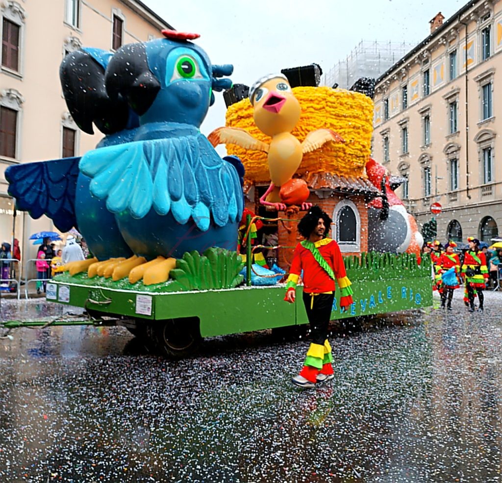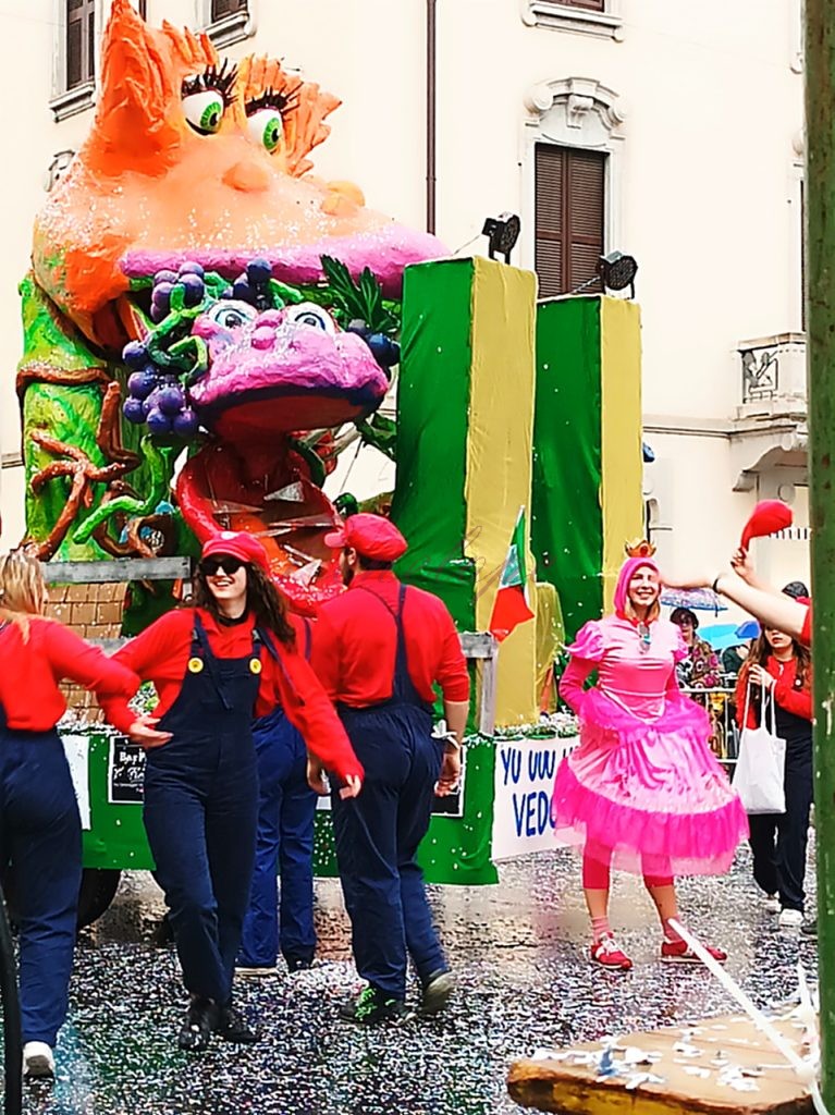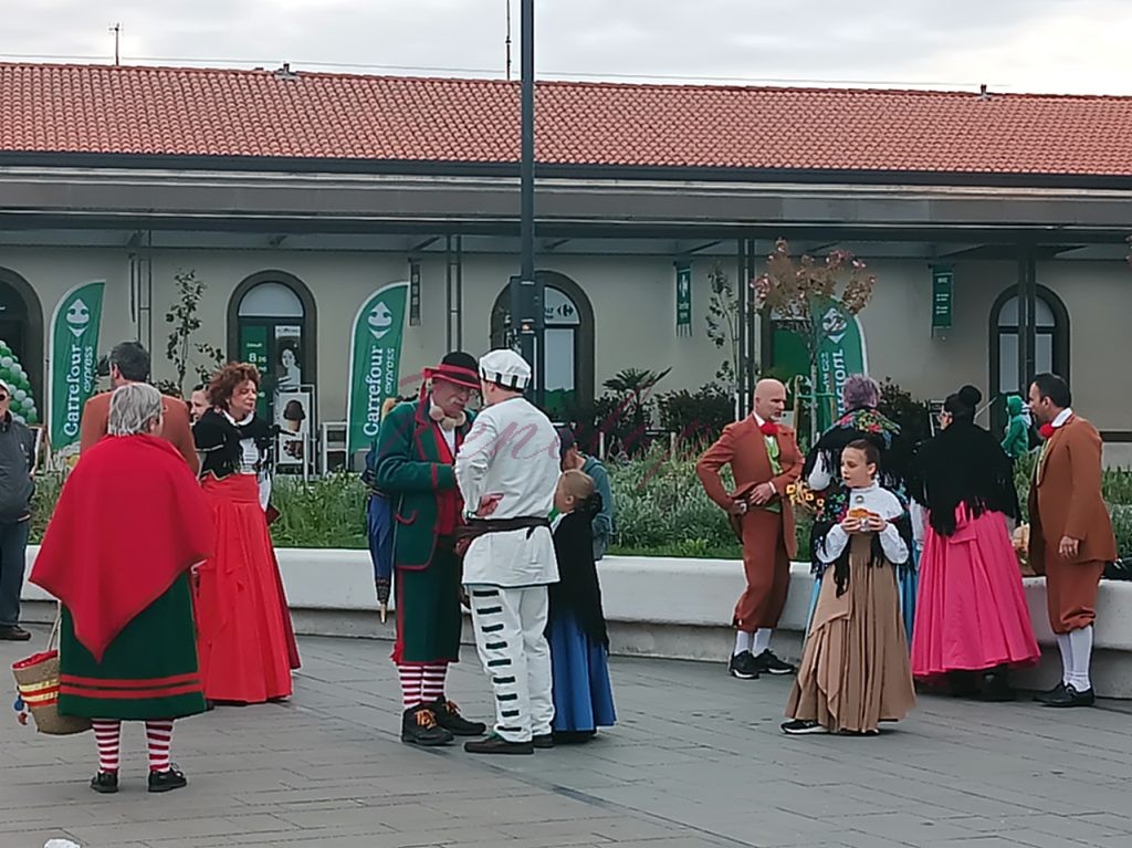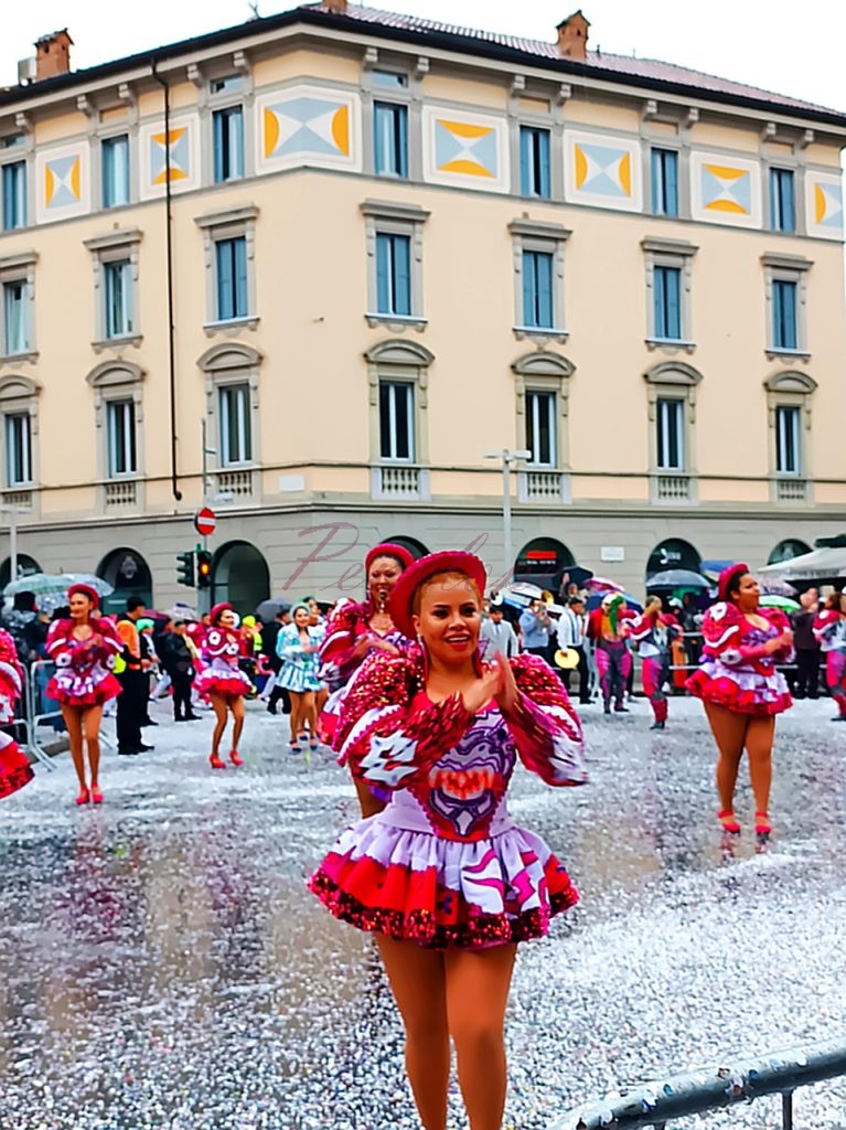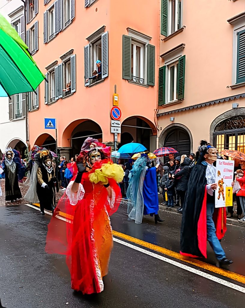 Τα πολύχρωμα κοστούμια των μασκαράδων έδεναν αρμονικά με τις πολύχρωμες προσόψεις των σπιτιών αυτής της γραφικής πόλης. Στενοί, πλακόστρωτοι αλλά και πιο σύγχρονοι δρόμοι υποδέχθηκαν τα άρματα.