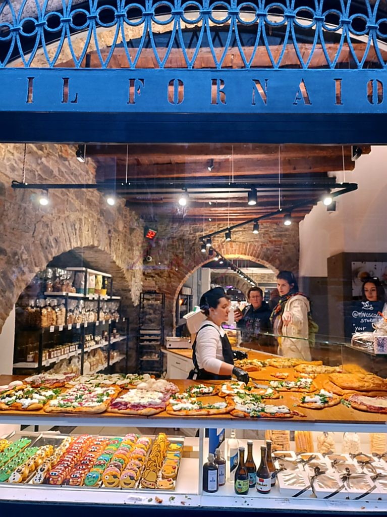 Στο Μπέργκαμο θα φας νόστιμο φαγητό. Φάγαμε πολλή πίτσα αλλά την καλύτερη την δοκιμάσαμε στο Il Fornaio στην Άνω Πόλη που διαθέτει μερικά τραπεζάκια για να ξαποστάσεις τρώγοντας.