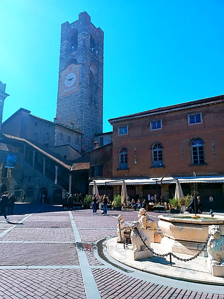 Η Piazza Vecchia βρίσκεται στο κέντρο της Παλιάς Πόλης (Citta Alta) και περιβάλλεται από πολλά ιστορικά κτίρια του 15ου αιώνα, όπως το Δημαρχείο ,το Palazzo Nuovo και το Palazzo della Ragione με τις εντυπωσιακές αψίδες του που χωρίζει την Piazza Duomo από την Piazza Vecchia.