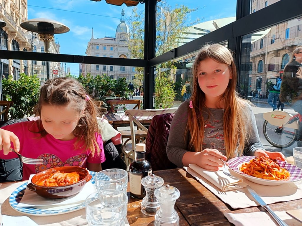 Τα κορίτσια ευχαριστήθηκαν ιδιαίτερα την βόλτα τους στο πάρκο. Παρόλο που μας αρέσει να κάνουμε πικνίκ, αυτή τη φορά προτιμήσαμε να επισκεφθούμε ένα αυθεντικό ιταλικό εστιατόριο και να απολαύσουμε την θεσπέσια ιταλική κουζίνα, κλείνοντας έτσι την επίσκεψή μας στο Μιλάνο.