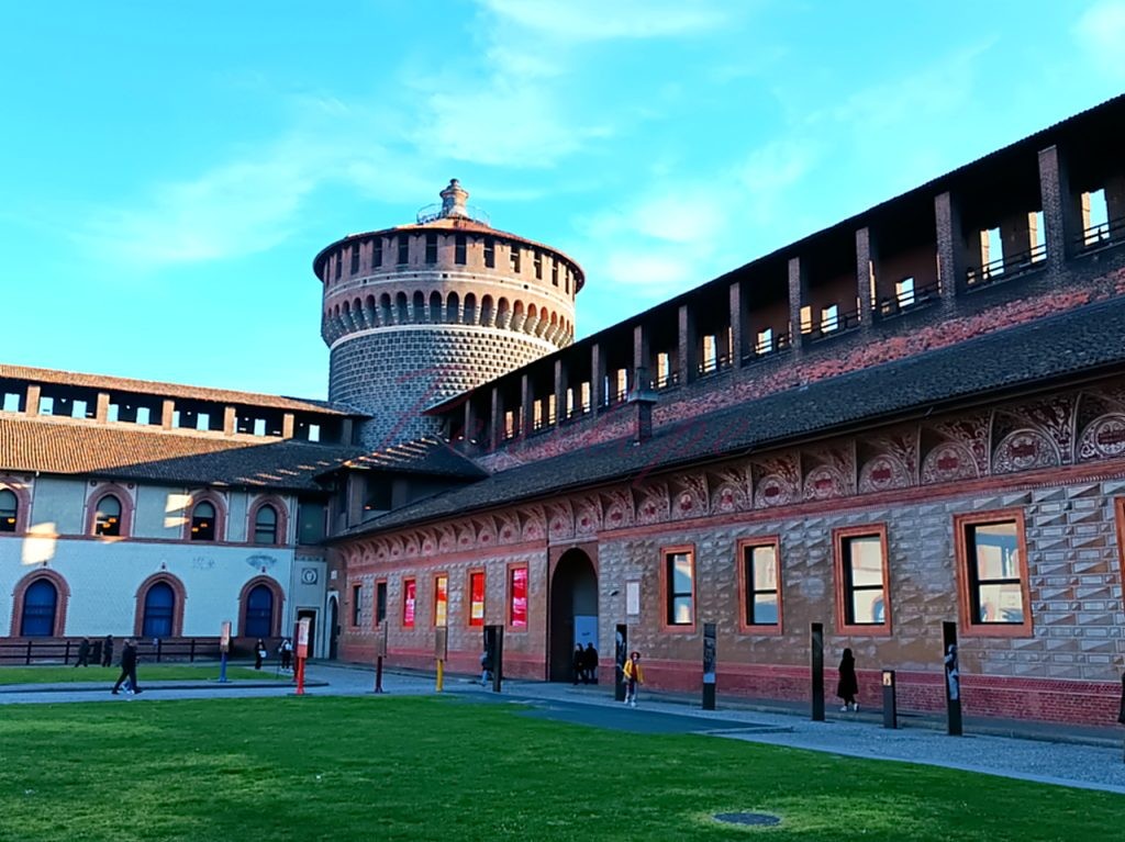 Από κεντρικό πεζόδρομο γεμάτο καταστήματα ,εστιατόρια και καφέ κατευθυνθήκαμε προς το Κάστρο των Σφόρτσα (Castello Sforzeco).Το αναγεννησιακό Κάστρο του 15ου αιώνα χτισμένο από τον Δούκα του Μιλάνου Φραγκίσκο Α΄Σφόρτσα, χρησιμοποιήθηκε ως κατοικία του και αμυντικό φρούριο. Τώρα πλέον στεγάζει Μουσεία και Χώρους έκθεσης έργων τέχνης.