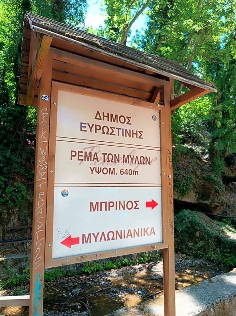 Ανηφορίζοντας από το παραλιακό χωριό Δερβένι, θα χρειαστείς περίπου μισή ώρα, μέσα από μια εκπληκτική κατάφυτη διαδρομή με ελαιώνες και πλατάνια για να φτάσεις στην Ευρωστίνη.