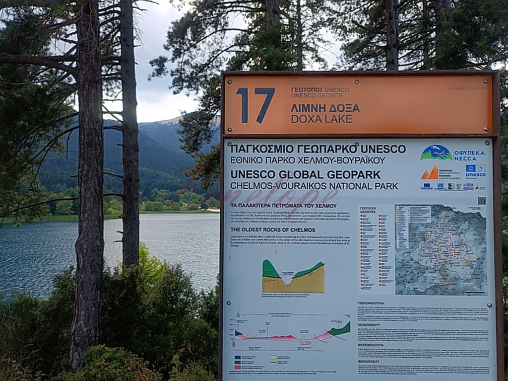 Σε απόσταση 10 χιλιομέτρων θα συναντήσεις την εντυπωσιακή Λίμνη Δόξα. Πρόκειται για τεχνητή λίμνη περιτριγυρισμένη από έλατα, σε υψόμετρο 900 μέτρων.Είναι ένας από τους διάσπαρτους γεώτοπους του Παγκόσμιου Γεωπάρκου Χελμού Βουραϊκού που προστατεύεται από την Ουνέσκο.
