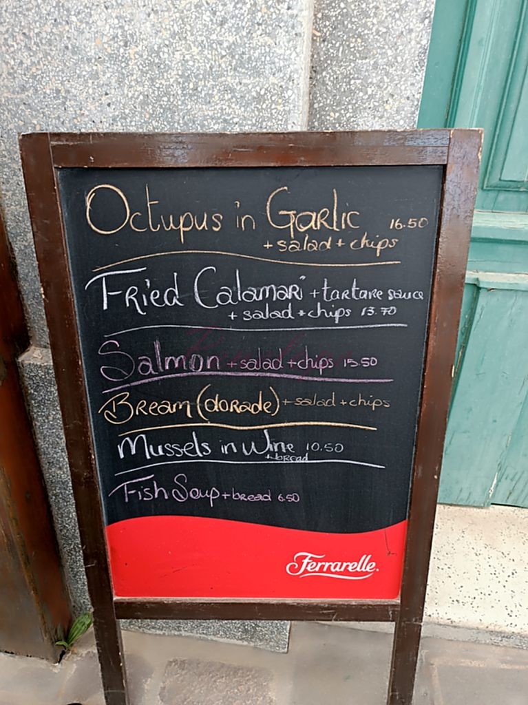 Το πρωί της Κυριακής κ μέχρι νωρίς το απόγευμα γίνεται παζάρι στην περιοχή με τοπικά προϊόντα. Εμείς δεν το προλάβαμε άλλα μετά την βόλτα μας, ευχαριστηθήκαμε την μακαρονάδα θαλασσινών συνοδεία ενός ποτηριού θεσπέσιου κρασιού.